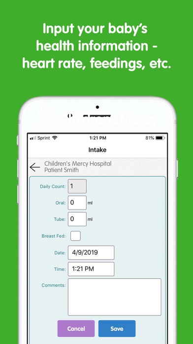 The app is not intended to diagnose, cure, treat, mitigate or prevent disease or health conditions. The app is a tool caregivers can use at home to assist with disease management of inter-stage babies.