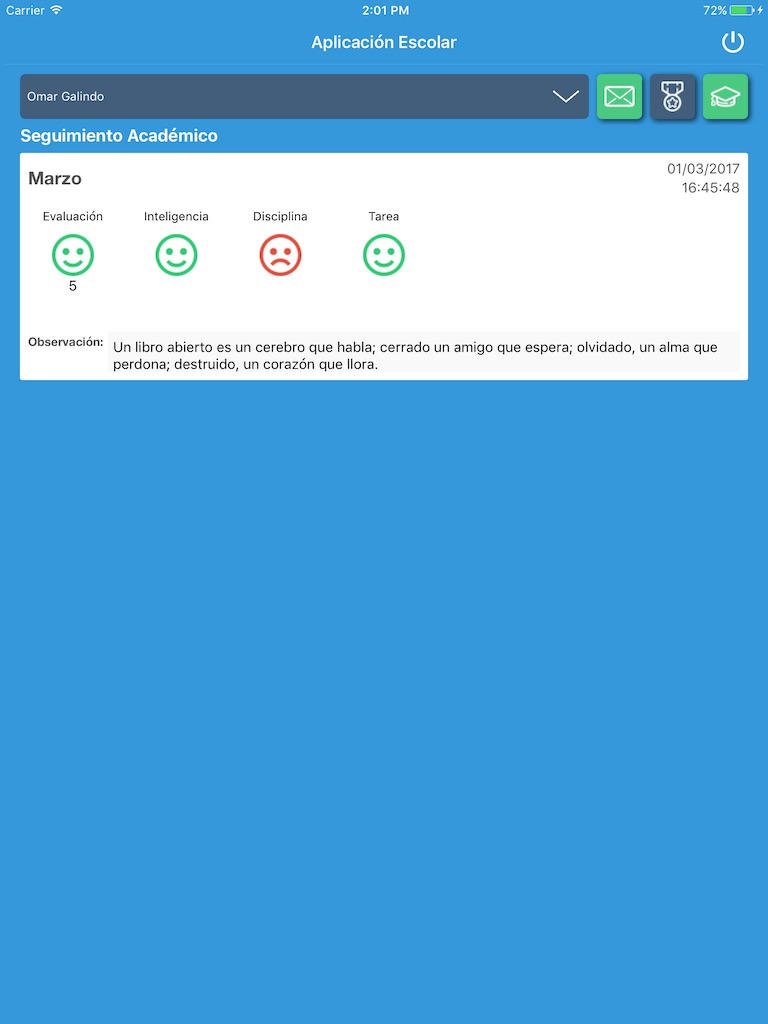 Aplicación escolar del Children´s Place, para recibir información como mensajes de pagos, tareas, circulares , seguimientos académicos , calificaciones graficadas y más.