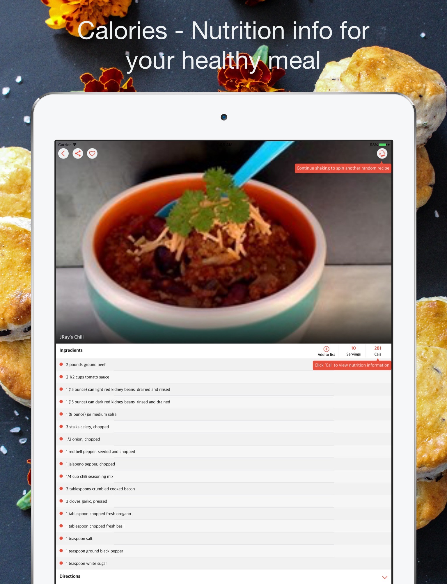 - Shake to get a random recipe inspiration