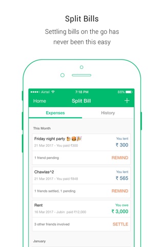 Split bills with your friends even if they are not on Chillr. Manage and keep track of all settlements and send reminders if they haven’t paid up.