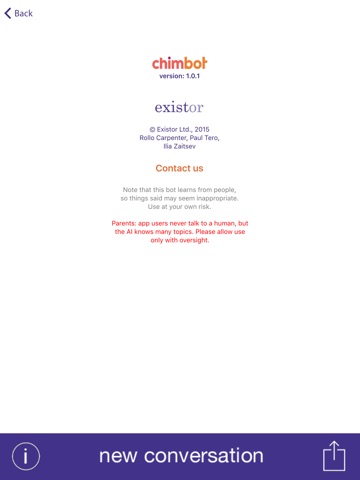 As it says in the app, Chimbot learns from people, so things said can sometimes seem inappropriate. Use at your own risk.