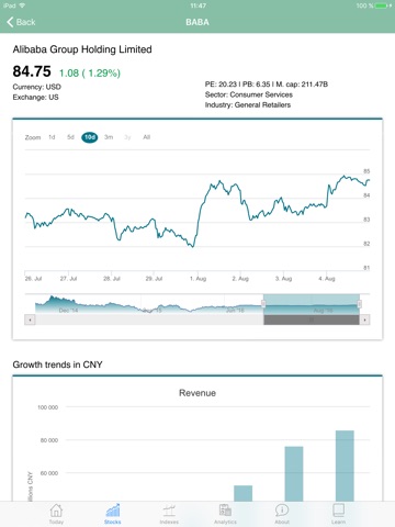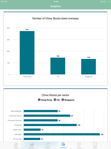 China Stocks app brings all overseas listed China stocks in one place. You can easily compare China stocks across US, Hong Kong and Singapore stock exchanges and select the best ones that match your criteria.