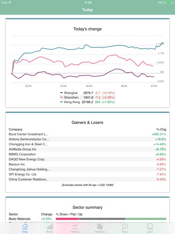 Get an instant snapshot of how the China Stocks are performing across world major Stock exchanges: Top Gainers & Top Losers, Sector summary and more. All strictly focused on China Stocks.