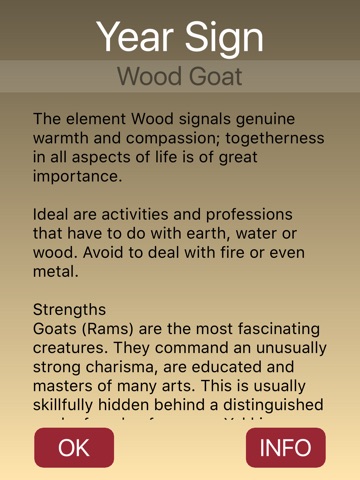 Geniale App!!! Damit kann man schnell und einfach rausbrignen was mein Gegenüber für ein chinesisches Sternzeichen ist und was er für stärken und schwächen hat. (oft ein Augenöffner und / oder Lächelnaufsgesichtzauberer) ;-) Super ist die Aktualisierung, die die eh schon gute Darstellung noch besser gemacht hat.