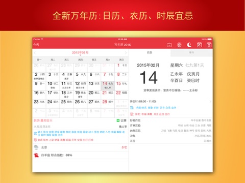 万年历是功能非常强大的日历应用,不仅提供公历,农历,黄历宜忌,节日,假日等实用查询功能,还有生辰八字、生肖分析、星座分析、周公解梦、历史今天、记事提醒等功能。可适配iPhone/iPod/iPad各种机型。