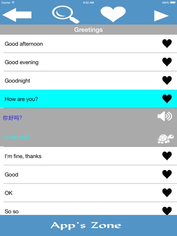 • Instant search for phrases & vocabulary by keyword in both english and Chinese