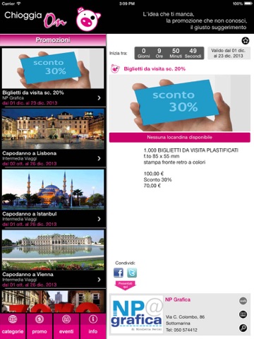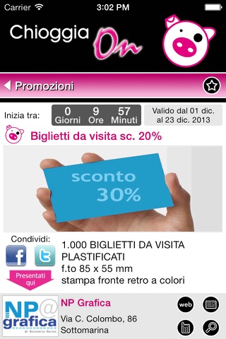- salvare sui preferiti le promozioni e gli eventi di tuo interesse