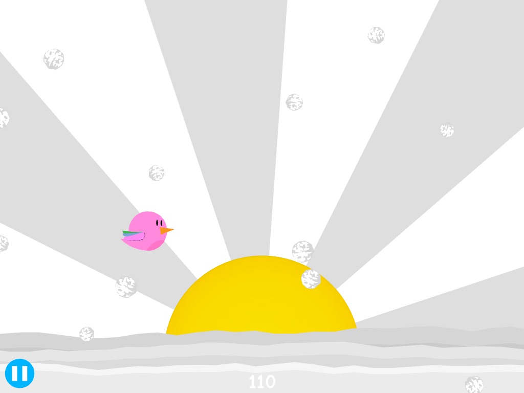 Chirp! includes totally random levels that will go on forever until your migration comes to an end. The goal is to migrate as far as possible. At the end your score will be sent to Game Center to show off your awesome skills to all of your friends.