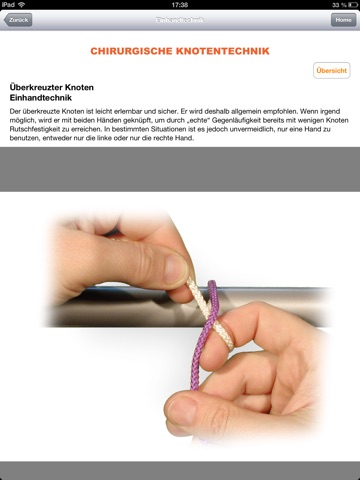 Mit dieser kostenlosen App erhalten Sie eine Anleitung, um die wichtigsten chirurgischen Kontentechniken einfach, flexibel und zeitnah zu erlernen. Diese Anleitung ist für Berufsanfänger geeignet, die sich die wichtigsten Nahttechniken aneignen wollen. Weiterführende Techniken sind nicht Inhalt dieser App. Die Knoten sind aus Sicht des Operateurs dargestellt. Sie werden beschrieben sowie grafisch dargestellt, um das Nachmachen möglich einfach zu gestalten. Beim Üben der Knoten empfehlen wir eine zweifarbiger Schnur zu verwenden. Wir hoffen, dass diese App für Sie nützlich ist und wünschen Ihnen viel Erfolg für Ihre berufliche Praxis.