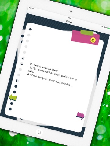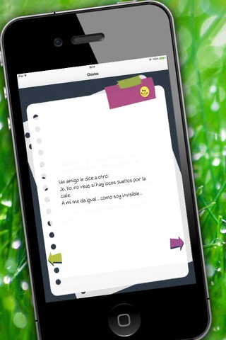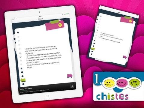 You have the best collection of jokes in Spanish, classified by subject in this application free. The best jokes that you have fun and share with your friends, family, coworkers or University going from laughter! Full of laughter and good humor your every day with this selection of more than 1000 good to share jokes. There is a fun selection of more than 1000 jokes. You will find: short jokes, cruel jokes, doctor jokes of lepe, political jokes, jokes jokes feminists and male chauvinists, chistes de Jaimito, marriages, children... If you like the app, please vote for us and help us improve thanks!