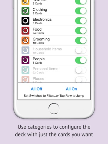 • 10 Filterable Categories (Animals, Clothing, Food, etc.) to tailor the decks for each patient