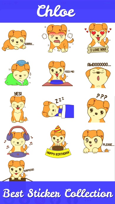 A perfect way to send emotions to your mates! Collect and get Chloe stickers and have a blast chatting with your friends. Very pleasant and full of expression with our most adorable puppy, Chloe.