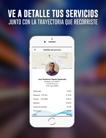 Una vez finalizado tu viaje, revisa tu tarifa, evalúa a tu chofer y recibe tu comprobante de pago.