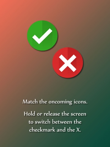 Match the oncoming icons. Hold or release the screen to switch between the checkmark and the X.