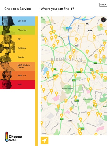 Deciding which health service to use when you need urgent or emergency care can be confusing. There are a range of services across the West Midlands but many people don’t know which the best one to use might be. Our new ‘Choose well’ app is brought to you by Clinical Commissioning Groups across the West Midlands and gives advice and guidance on which service is best for your needs. Often, there are more appropriate and closer services you can use for minor illness or injury. Our free app will help you to choose the right one and the interactive map can even show you the services closest to where you are right now, whether than be at home, in the car, at work or out shopping!