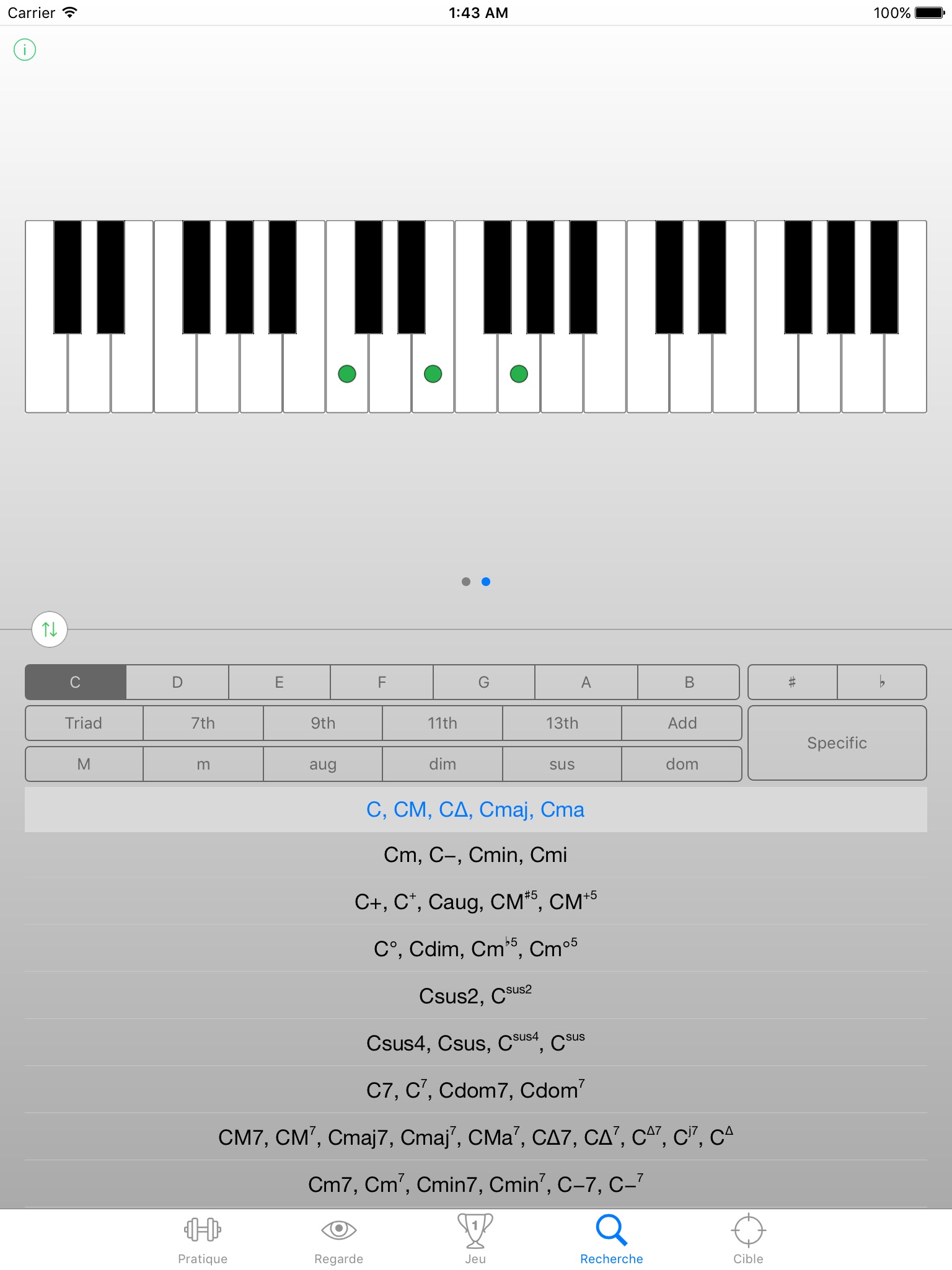 • Allow to customize the learning by chords roots, forms, quality, inversion, and voicing (open or closed position, doubling)