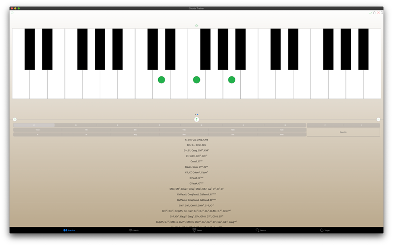 • Allow to customize the learning by chords roots, forms, quality, inversion, and voicing (open or closed position, doubling)