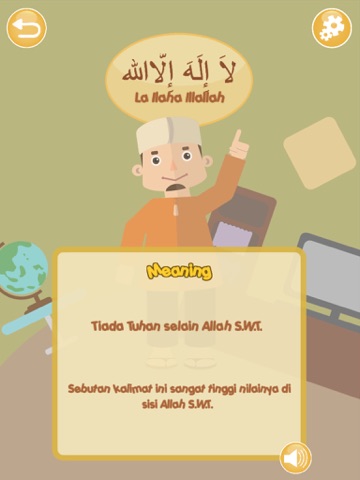 Includes a simple 2D animation of the character during the ongoing of Kalimah elaborations.