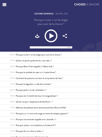 Développez facilement vos connaissances et votre culture générale grâce à lapplication "Choses à Savoir" qui vous permet découter des podcasts gratuits et quotidiens.