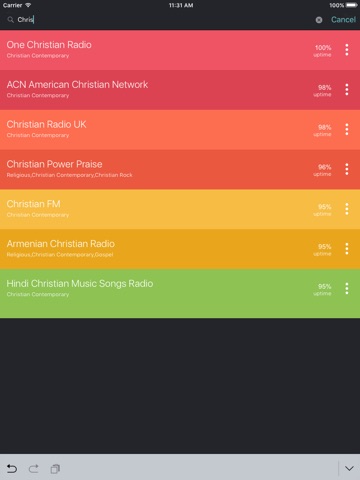Introducing the best Christian Contemporary Music Radio Stations App with live up-to the minute radio station streams from around the world. This app has hundreds of the top "Always Live" radio stations arranged by the station’s uptime percentage so you always get a "Live Radio Feed". We have also integrated a 1-Click YouTube search feature that lets you watch videos of any song that is playing on live radio. Our app also shows you information about what song is currently playing on any particular radio stream & allows you to share radio station links with your friends and family that will work on any mobile browser without having to download our App. This App allows you to search any radio stations by name but if you are in the mood of listening to a different variety of songs you can easily search our entire website from within the app, which will search our entire index of over 30,000+ Radio Stations. We have worked very hard to build this beautiful Radio App with all the best design practices which will provide you with the best user experience & hours of entertainment.