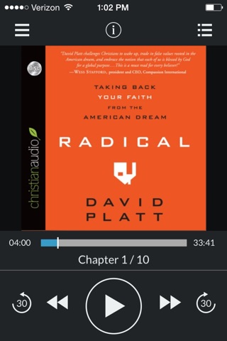 Update - Unfortunately, this app just continues to get worse and worse. I have had to delete the app completely and re-downloaded several times to try to get it to work. Every time I read downloaded I lose all of my previous information about the books I was listening to. The downloading process is terrible. Most of the time, it just doesnt work. It will start downloading my book, and then just stop halfway through the download. The app developer needs to completely scrap this app and start from scratch, in my opinion. This is just too filled with bugs. Too frustrating. Not worth the time and effort. --------------- Previous review… First off, Im really glad this app finally exists. Ive been buying books from ChristianAudio for many years. I also buy a lot of books from Audible. Audible has had a great app for many years that I use daily. Ive been looking forward to Christian Audio developing an app as well. The App is finally here, but the thing is it is terribly buggy. Which makes it frustrating and difficult to use. Here are my biggest frustrations: 1. Every time I try to refresh the audio books in my library on my device the app freezes up and I have to shut the app down and reboot it. 2. For no apparent reason, if I pause the audiobook and then come back to it a few minutes later, the audio jumps back about five or 10 minutes, so I am re-listening to something that Ive already listened to. So I have to keep using the jump forward button to find the place where I left off last time. 3. For no apparent reason that I can figure out, when I have shut the audiobook app down completely, then opened it back up again a day or two later, the audiobook I have been listening to will start over again from the very beginning of the audiobook. Again, very frustrating because I have to go back and find the place I left off again. I should note, that this is happening with books that I have downloaded from the cloud onto my device. Also, the app is missing what is arguably the single greatest feature for this kind of app. There is no streaming service available on the app. Your only option is to download the books directly onto your device instead of streaming. Streaming is what makes this kind of app most useful because most devices (like an iPhone, iPad, or iPod) have very limited amount of space on them. When you can stream the audio book, it doesnt take up valuable space on your device. Hopefully this is a feature coming in the future. Anyway, Im very glad this app is here. I just hope all of the bugs get worked out quickly so that we all can start enjoying the app, and more importantly the wonderful books that are on the app.