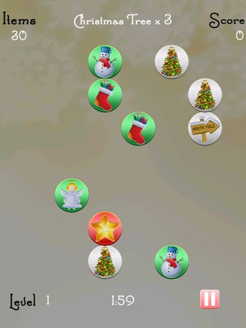 When timer says go, look the the type of christmas symbol needed and find it quick.