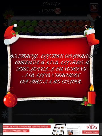 The goal of the game is to clear all the xmas balls from the level avoiding any ball crossing the bottom line.
