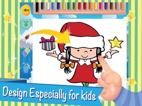 Explore the childs artistic ability with "Christmas Coloring Book". Beautifully designed Coloring app packed with 36 beautiful pages of Christmas: Santa and kids princess theme with animal. A guaranteed fun of long hours for your kid. It has Child friendly interface with a soothing music.