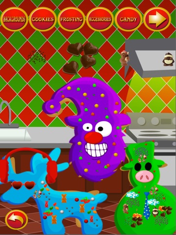 Have a Jolly time making endless Cookie creations. Choose from 5 holiday inspired backgrounds. Then, select from 9 different sugar and gingerbread Cookie shapes- Santa, Reindeer, Bell, Star, Christmas Tree, Snowman, Stocking, Dreidel, and Gingerbread Person.