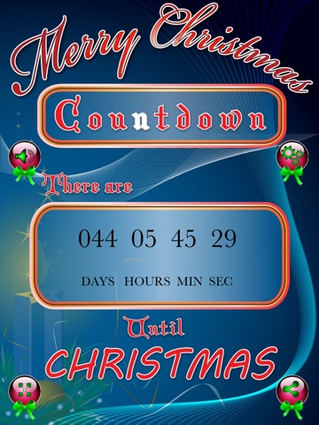 Christmas Countdown will always inform you exactly how many days, hours, minutes and seconds left until Christmas. Christmas Countdown will provide you beautiful design and soothing tunes will surely change your mood and fill in your heart with the joy of Christmas!