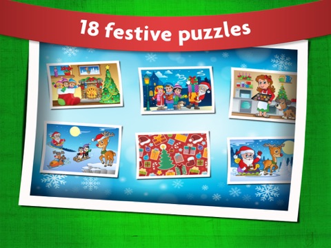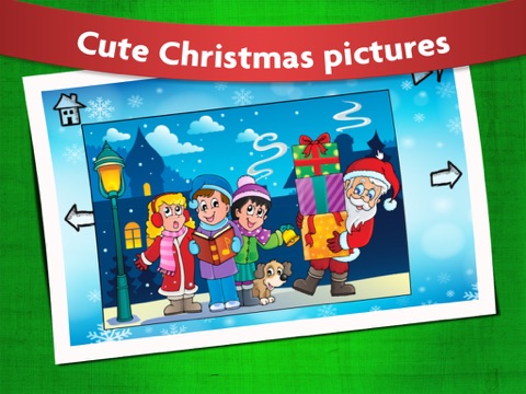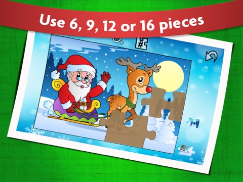 Puzzles in this kids game include Santa Claus riding with Rudolph the reindeer, Frosty the Snowman, Christmas candy and gingerbread cookies, and many more festive winter and Xmas holiday scenes.