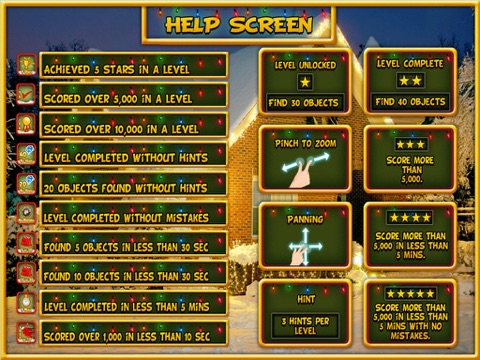 PlayHOG presents Christmas Lights, one of our newer hidden objects games where you are tasked to find 5 hidden objects in 60 secs. Your score is tied with a multiplier that increases as you find the right hidden objects, but beware, make a mistake and it will reset to 1. Try to get the highest score as you try to find all 400 hidden objects in Christmas Lights.