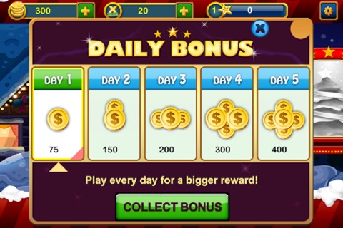 * Daily Bonus where you can win up to 50 coins