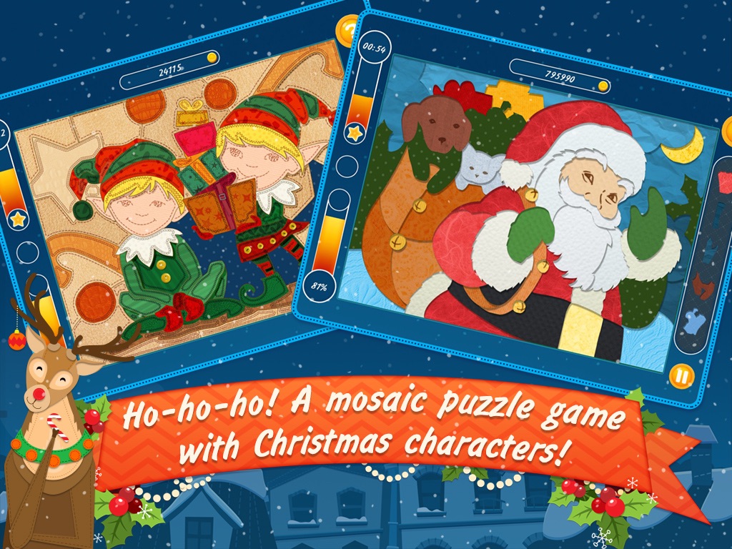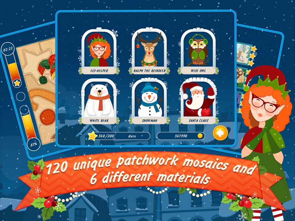 Christmas Mosaic Puzzle is a true winter fairy tale! Santa Claus is giving you 120 unique mosaics made of various materials: wood, cloth, paper, stone, metal, glass and precious stones.