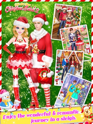 Open the game and choose a girl to start with. The first thing that catches your sight is a joyous house, click it and then you can freely place the twinkling lights, pretty bowknots, fun candy canes and many more ornaments to make the house more festive for the holidays! And you can also decorate the tree in the same way. Do you know where it is? Aha~ Just slide the street to the left, you will find it next to the sleigh. Hmm… Pretty good! Then, you can give the girl a beauty makeup, and stunning holiday costumes. Besides, please click the "Friends Home" to choose a handsome boy, and itll be necessary to dress him up by tapping the hanger. After that, bring them to the gift shop or warm stove, where you can take photos to record the sweet moments. Finally, when you return to the street, click the icon on the top right to challenge the daily task, after you complete all the tasks, Santa Claus will secretly send gifts to you! Cant wait anymore? Come and explore the dreamy fun!