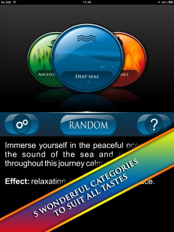 This application is divided into five basic categories, all inspired by nature and the world, each category can make a specific feeling, the user will choose what kind of trip to face.