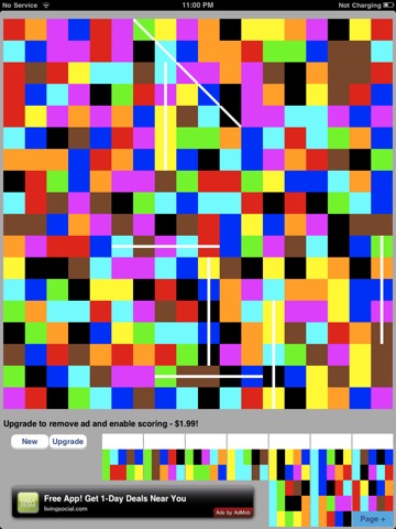 Word find puzzles just got a colorful new twist! In this game, 5-cell color patterns will be hidden in a large (18x18 on iPad, 11x11 on iPhone and iPod Touch) grid. Your job is to find the pattern in the grid and touch the first cell, then repeat until all patterns have been found. Patterns will be shown in horizontal (left-to-right), vertical (up-to-down) and diagonal (left-up to right-down) directions.