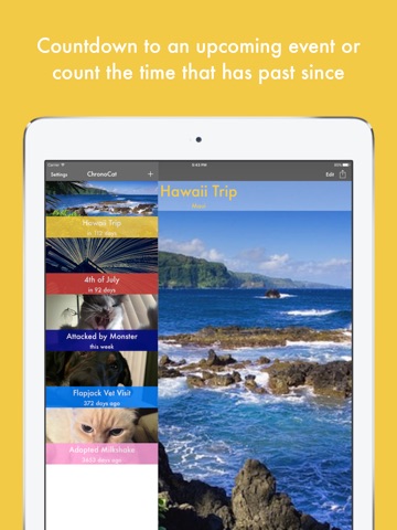 ChronoCat helps you count down the time to an upcoming event or see how much time has passed since then.
