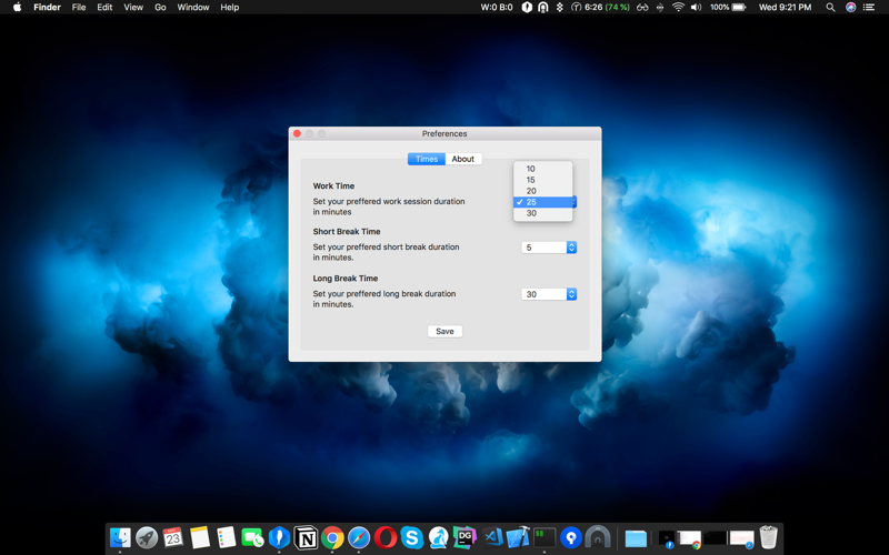 Chronos is based on the proven Pomodoro™ Technique for time management, Using it to chunk down tasks into shorter, highly focused work sessions can help you manage your time more effectively, and makes large projects seem less onerous.