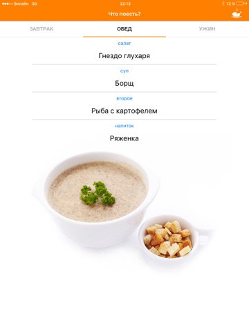 Что поесть? Этот вопрос терзает время от времени каждого человека. Бывает, что продукты уже в холодильнике, а ничего не придумывается. Приложение "Что поесть?" призвано напомнить о самых популярных блюдах. Здесь нет рецептов, но есть подсказки. Просто откройте приложение и выбирайте, что приготовить на завтрак, обед или ужин. Если предложенные блюда вас не устроили, просто потяните экран вниз и получите новые идеи. Проблемы меню больше не существует! Приложение "Что поесть" напомнит вам о самой любимой еде.