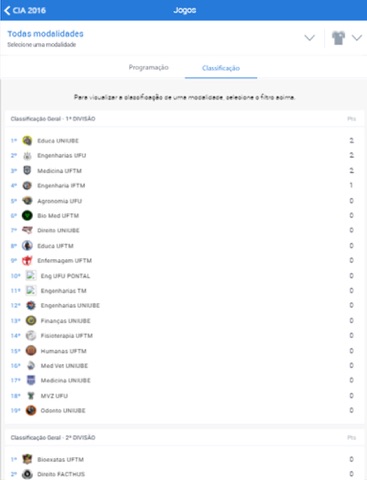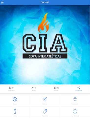 CIA 2016 é o aplicativo oficial da Copa Inter Atléticas, edição de Uberaba/MG. No app da maior competição Universitária do Triângulo Mineiro, você pode acessar: