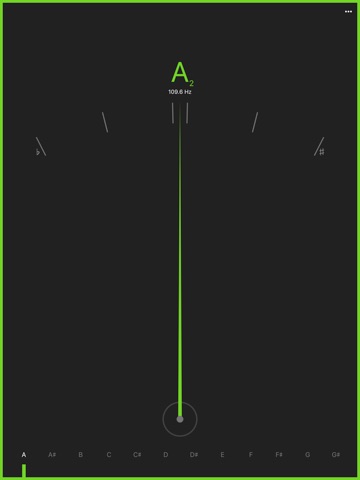 Tighten or loosen the chord until the pointer has centralized and turned green, in order to play the desired note. If it turns orange you must tighten, if it turns red you must loosen.