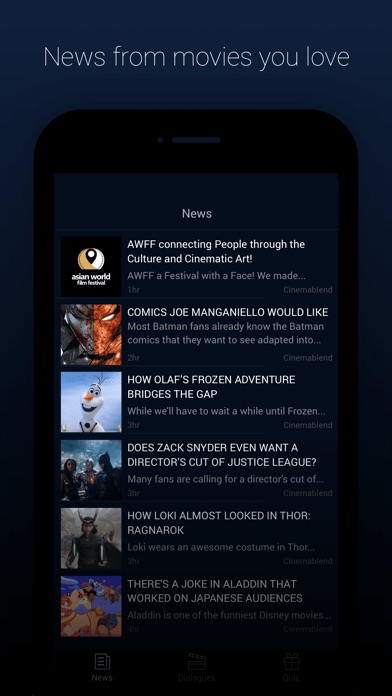 Features list won’t stop here; we’ve got you a surprise! CinemaLog contains a very creative and special quizzes which you can CHALLENGE your cinema knowledge and compete with your friends and others in order to reach your rightful place in the leaderboard… FIRST PLACE.
