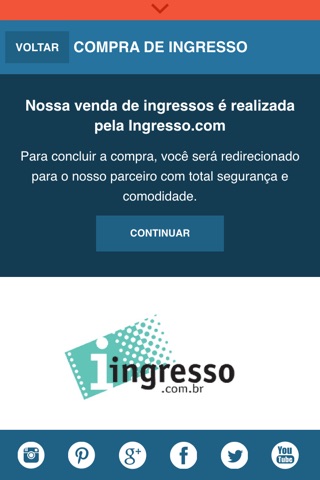O aplicativo conta com a facilidade de compra de ingressos, é só selecionar o cinema, o filme que pretende assistir e pronto, concluir com a compra de seu ingresso.