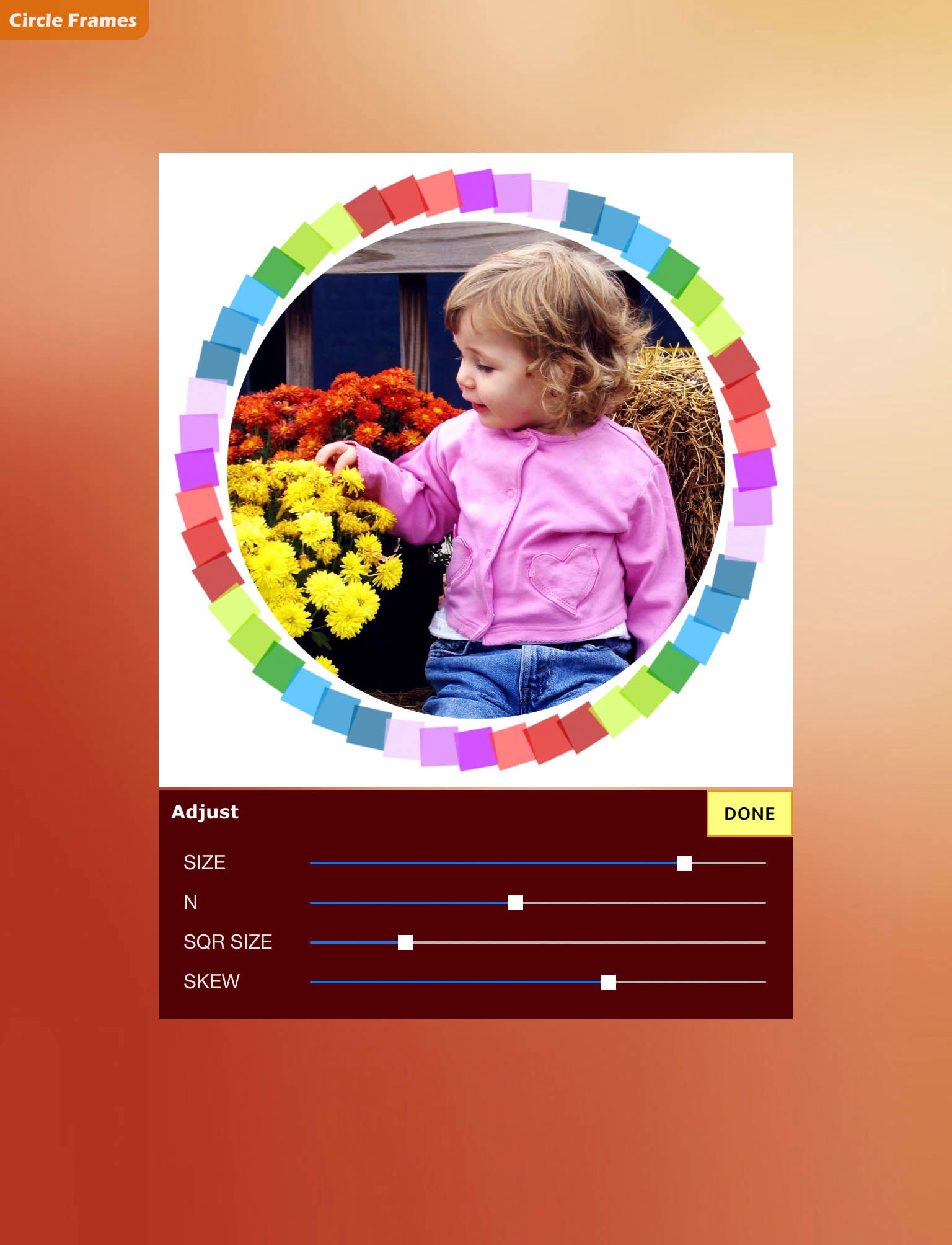 This app offers a variety of circle frames. And adjusting the geometry is possible for all of them.