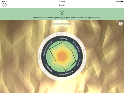 Evaluation: This app has a questionnaire that will allow you to assess and measure your cardiovascular health. Using a series of questions about your physical activity, cholesterol, glucose, use of tobacco, etc., it will identify the risk factors that you should be aware of to avoid health problems.