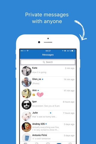 You can use chat using your geolocation to send a message to people around you. Point out the necessary communication radius (from 500 meters to 5 kilometers). Communicate via chat in lecture hall or communicate with people nearby when you are in traffic jam. Probably, it is time to meet your neighbors. You don’t need to seek anybody in social networking or add friends, just send a message in chat.