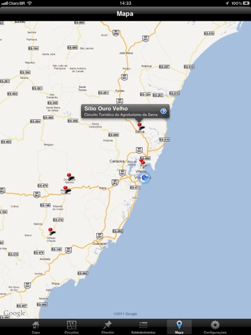 Com o aplicativo Circuito Turístico, você localiza os lugares mais interessantes do Espírito Santo para praticar esportes radicais, experimentar a deliciosa culinária de diversos municípios, conhecer culturas, festas populares, fazer passeios em lindas paisagens e se hospeda em pousadas e fazendas para desfrutar do que há de mais gostoso da vida no campo.