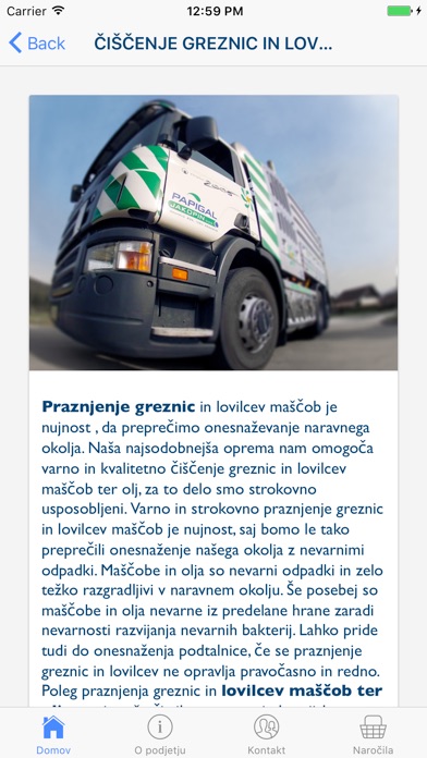 Aplikacija Papigal Jakopin je polna informacij o storitvah PAPIGAL JAKOPIN d.o.o.k, ki obsegajo vse od čiščenja in sanacij kanalizacije, pregledov kanalizacije z video kamero, praznjenja greznic in lovilcev, čiščenja greznic vse do odvoza odpadnih vod.