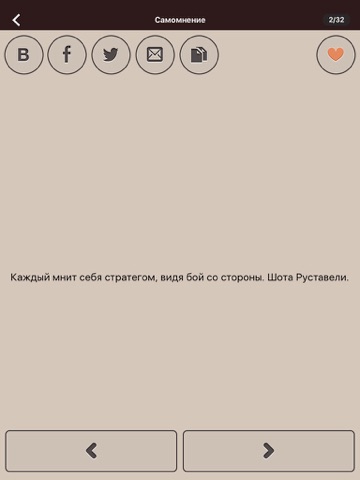 - возможность поделиться цитатами через ВКонтакте, Facebook, Twitter;